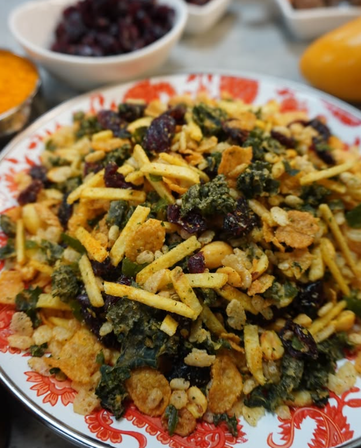 Chevda is a crunchy, flavorful, and savory combination of potato, corn, rice krisps, fennel, nuts, curry leaves, turmeric, kale, dry fruit, and Indian spices. It can be enjoyed on its own or as an addition to many dishes. The Original Flavor by Rishi is the treasured recipe from Manisha’s mother, Rishi’s grandmother, and remains a favorite. The spice combination is the base for other flavors, like Mango Chili Lime, created with the help of celebrity chef and nutritionist Chef Vicky Colas.